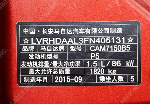 汽車金屬銘牌打標